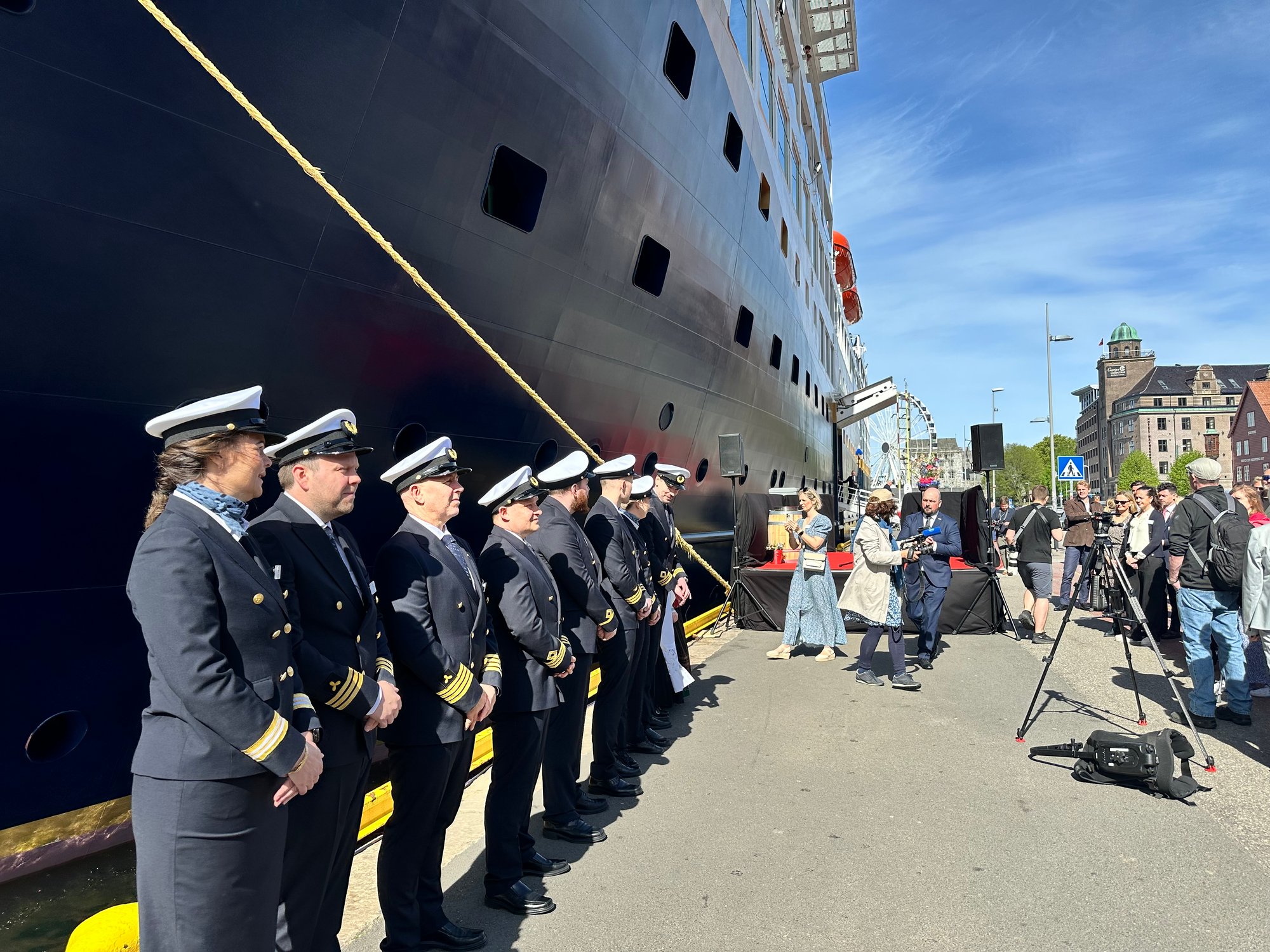 Skipet ble satt i drift langs kystruten Bergen-Kirkenes-Bergen i august 2023, og nå var det tid for dåp.