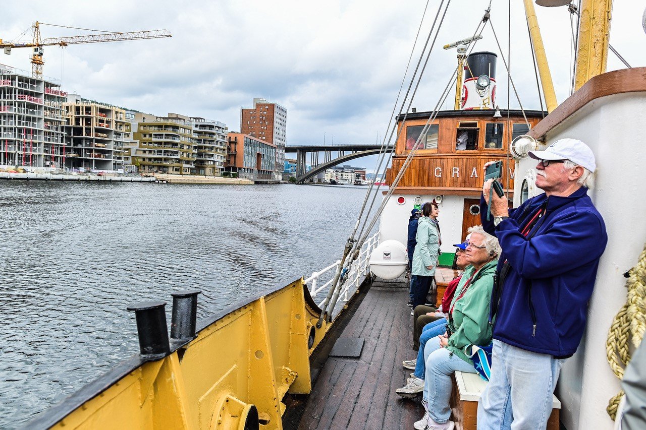 -Hadde alle disse som tar en båttur på fjorden i stedet tatt en tur med buss, så tilsvarer det omtrent 20 busser. Turene med veteranbåtene tar bort noe av belastningen, samtidig som det gir turistene en unik mulighet til å se Bergen fra sjøsiden. Vi håper at dette blir et fast opplegg. Neste år vil vi forlenge sesongen i begge ender, slik at enda flere cruiseturister får oppleve byen fra sjøsiden.